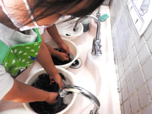 上手に分けられたかな⁉ 1回目は使わずに捨てます。