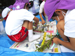 5歳児と3歳児が、枝から一つ一つ丁寧に取り分けてくれました。子ども達が取り分けた枝豆を、今週給食で食べます。楽しみですね~💗