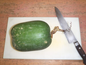 1週間ほど前から玄関に展示していた“冬瓜”を、本日(10/18)の給食“冬瓜のそぼろ煮”で食べました。