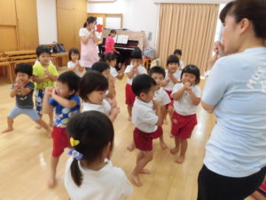 KAWAI音楽リトミックの講師の先生が来て下さって、2~5歳児がリズム遊びを楽しみました。