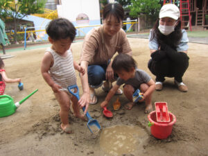 暑い日は泥あそびできる(汚れてもいい服装・着替え)準備をして、遊びに来てくださいね。