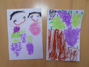 綿棒に絵具をつけて、ぶどうを表現!