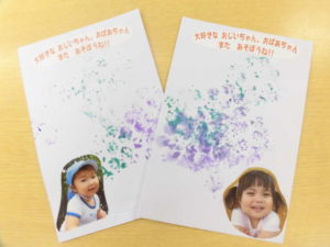 メッセージをお家で書いてもらって送ります。