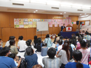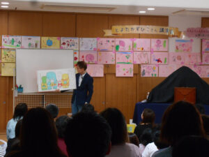 9月30日(土)絵本作家とよたかずひこさんの講演会を開催しました。18年前に通っていた保護者とのご縁でそこから2005年、2007年、2011年、2013年、2018年6回来て頂くことになりました。講演ではとよたさん自ら読み聞かせをしてくれました。