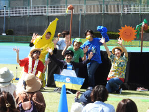 最後は保育教諭による「フラダンス」「飛んでったバナナの」の出し物。