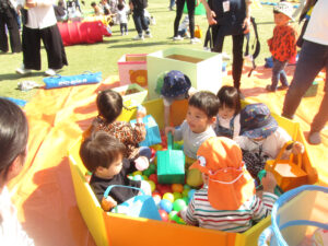 年に一度の「うさちゃんひろば」お天気にもめぐまれ90組以上の地域の親子と園の0・1・2歳児さんが遊びに来てくれました。