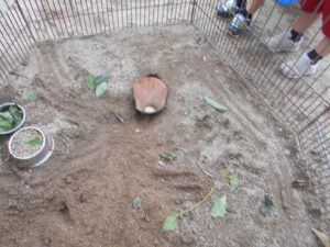 こんな大きな穴を掘っています。晴れの日は園庭に居ますので、のぞいてみて下さいね。