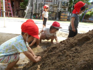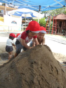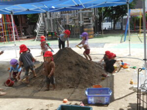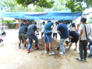運動会後、お父さん達が泥山づくりを手伝ってくれました。