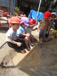 お父さんたちのおかげで、子どもたちはたくさん遊べます。これからの泥んこ遊びは楽しさ倍増です。