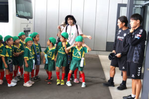 パナソニックスタジアム吹田に到着すると、コーチがお出迎えしてくれています。