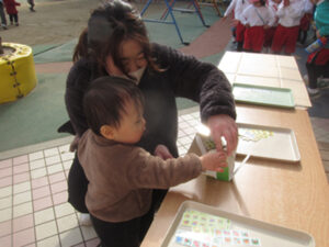 園庭でお正月遊びを楽しみました。