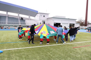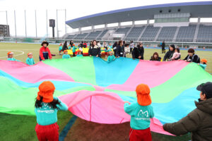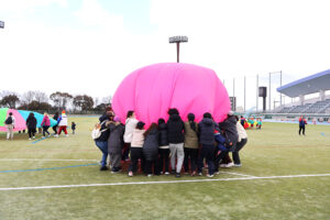 こどもチームとおとなチームに分かれてパラバルーンを行いました!