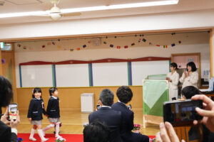 入場の前、「ドキドキする~」と言っていた子ども達。いざ入場すると笑顔で堂々としたお兄さんお姉さんらしい姿でした。