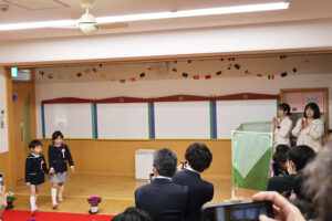 最後は ♪『一年生になったら』の歌を元気よく歌いながら退場する子ども達。自信を持って1年生になってくれることでしょう。