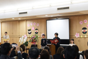 保護者代表の方が挨拶され、心温まるお言葉をいただき職員一同胸が熱くなりなりました。