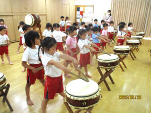 今年度から講師の守安仁先生が来られます。守安先生は、関西万博で和太鼓を演奏したり海外遠征に行かれたりするプロの和太鼓奏者です。