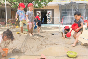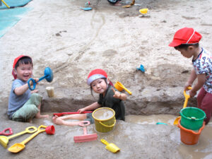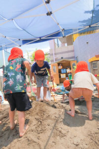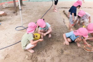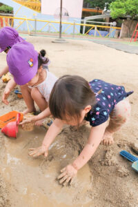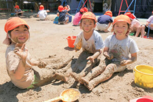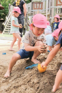 泥んこ遊びを通して自由に手を動かすことで脳の発達も促したり、裸足で遊ぶことによって足の裏の刺激にもなります。