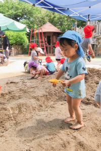 泥や砂の感覚、水と混じるとどうなるのか気温や天気によって温度が変わる大地を全身で感じることができます。