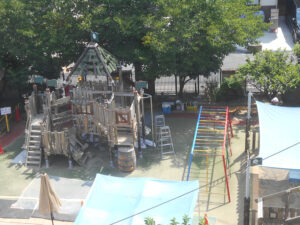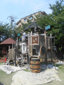 業社(チャイルド社)が来て塗装、ネット付けなどメンテナンスをしています。