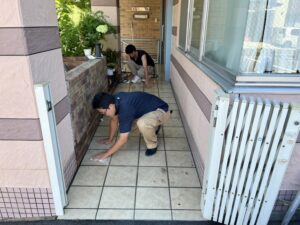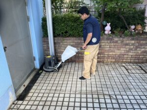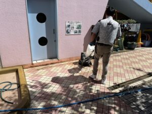 業社(株式会社ジャクエツ)に依頼して外回りの清掃に来て頂きました。