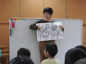 子供たちの素朴な疑問に、かわいい手描きのカードを見せながらお話をしてくれました。