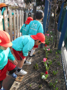 園庭のお花が咲き始めました!