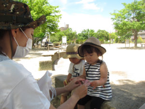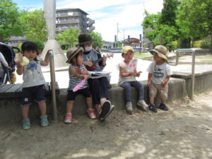 少しの時間でしたが、南が丘公園に遊びに来ていたお友達と歌をうたって楽しみました。