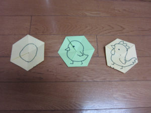 クルッとひっくり返すと絵が変わる”六角返し”の手作りおもちゃをプレゼントすると、「クルッとするー」と夢中になって遊んでくれていました。アンパンマンの絵のパターンも用意していたのですが、やはり一番人気で「アンパンマンー♪」と喜んでくれていました。