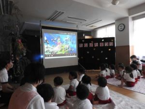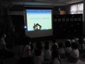 七夕の映像を見ながら、先生たちの声でお話が進んでいきます。