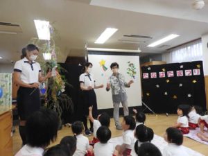 今年は、コロナウィルス流行のため、2部制に分かれて七夕まつりをしました。
