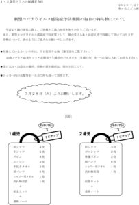 本日、「1・2歳児の荷物について」のお便りを配布させて頂きました。