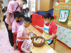 年長ゆりぐみが毎年恒例の、ワクワクおまつりデーに参加しました。