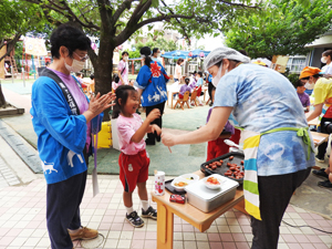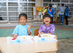 夕方は園庭で夏祭りをイメージした食事タイム。