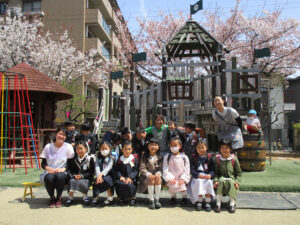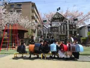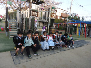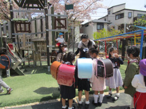 今日、小学校の入学式があり、南ヶ丘こども園にランドセル姿を見せに来てくれました!