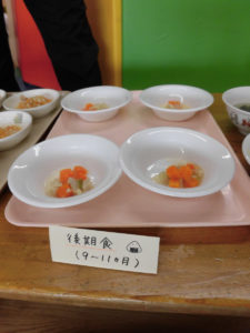 昆布やカツオでとった出汁やこども園で食べている離乳食を試食しました。