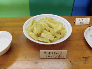 [本日のメニュー]鶏肉と野菜の煮物・おかゆ・野菜スティックなど