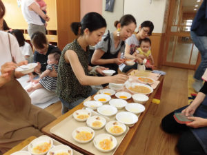 お子さんは勿論、ママ達にも試食してもらい、野菜や出汁の味を感じてもらいました。