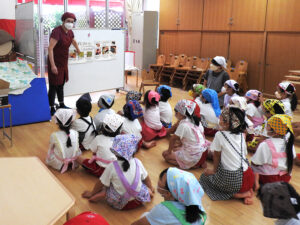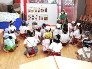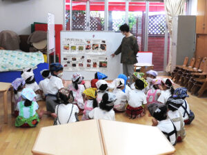 園長先生・ともこ先生から、南ヶ丘こども園での梅干しづくりについてのお話を聞きました。