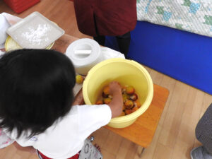 新型コロナウイルス感染症拡大防止の為、2年間行なっていなかったゆり組恒例「梅干しづくり」を、行いました。