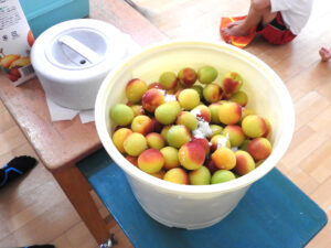 梅干しが完成するまでに、3回の工程を行ないます。今日は第1回目!